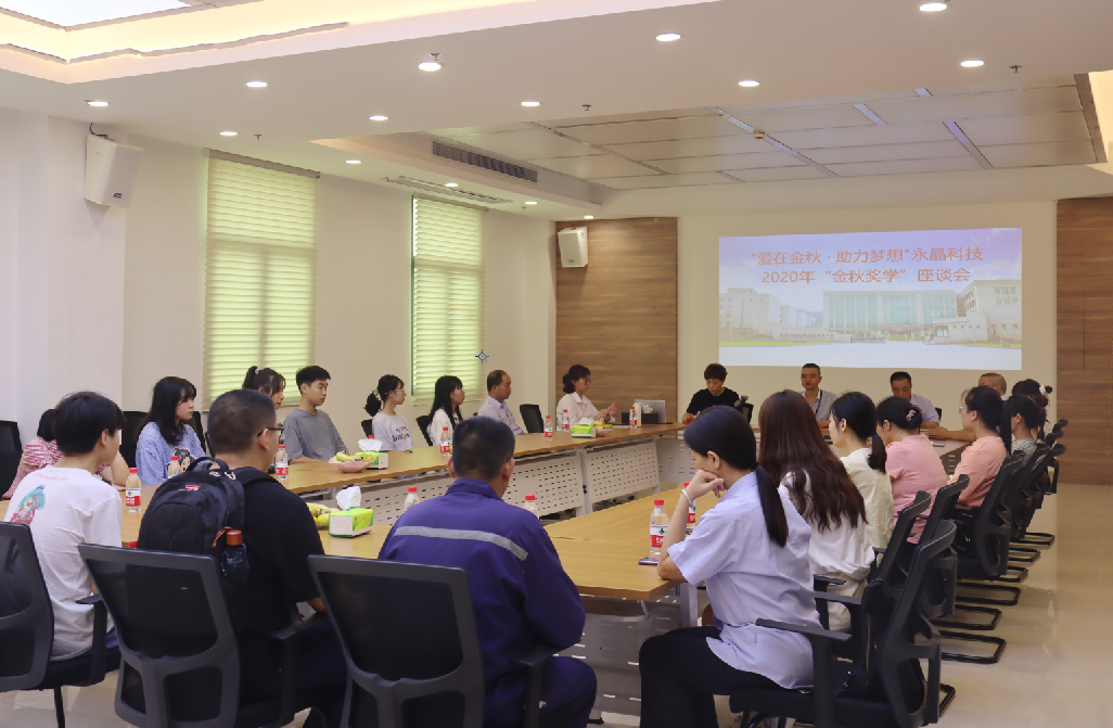 又是一年開(kāi)學(xué)季,助學(xué)圓夢(mèng)正當(dāng)時(shí)。2020年9月14日,永晶科技工會(huì)組織召開(kāi)“愛(ài)在金秋·助力夢(mèng)想”2020年助學(xué)獎(jiǎng)勵(lì)金發(fā)放座談會(huì),向取得優(yōu)異成績(jī)的職工子女致以誠(chéng)摯的問(wèn)候和美好的祝福。公司副總經(jīng)理兼工會(huì)主席任清貴、工會(huì)副主席兼人力資源部部長(zhǎng)洪勝財(cái)、大學(xué)新生及學(xué)生家長(zhǎng)代表共計(jì)30余人參加了座談會(huì)。